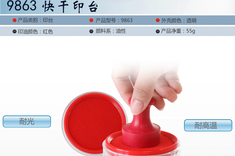 得力9863快干印臺(tái) 紅色印泥 財(cái)務(wù)專用蓋章印油 印泥油不暈染