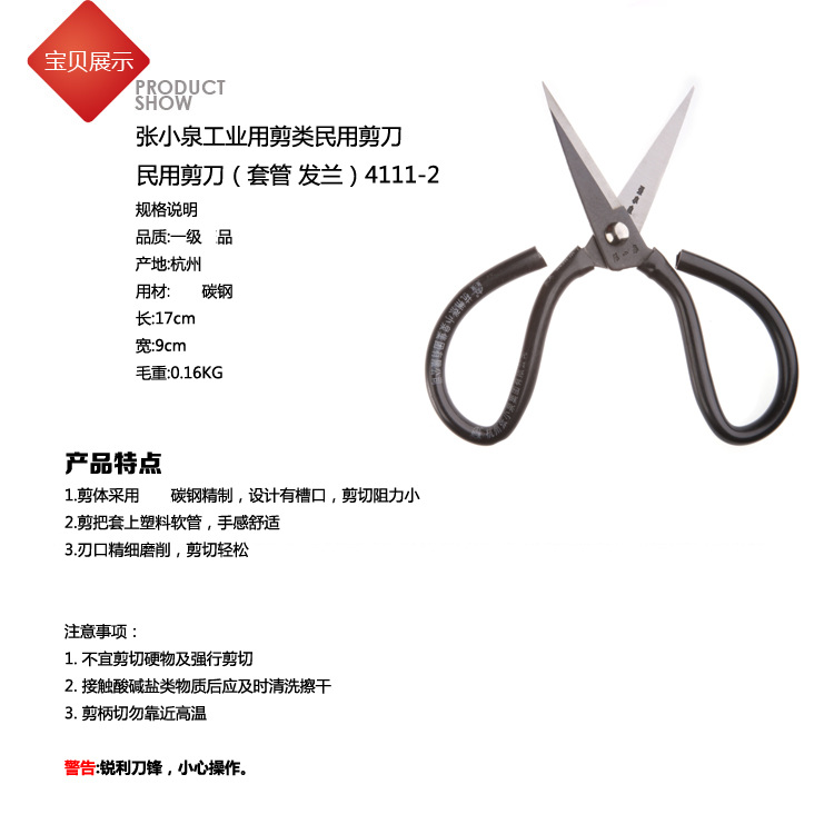 張小泉剪刀大號工業(yè)剪刀家用剪刀小號剪刀淬火碳鋼剪刀