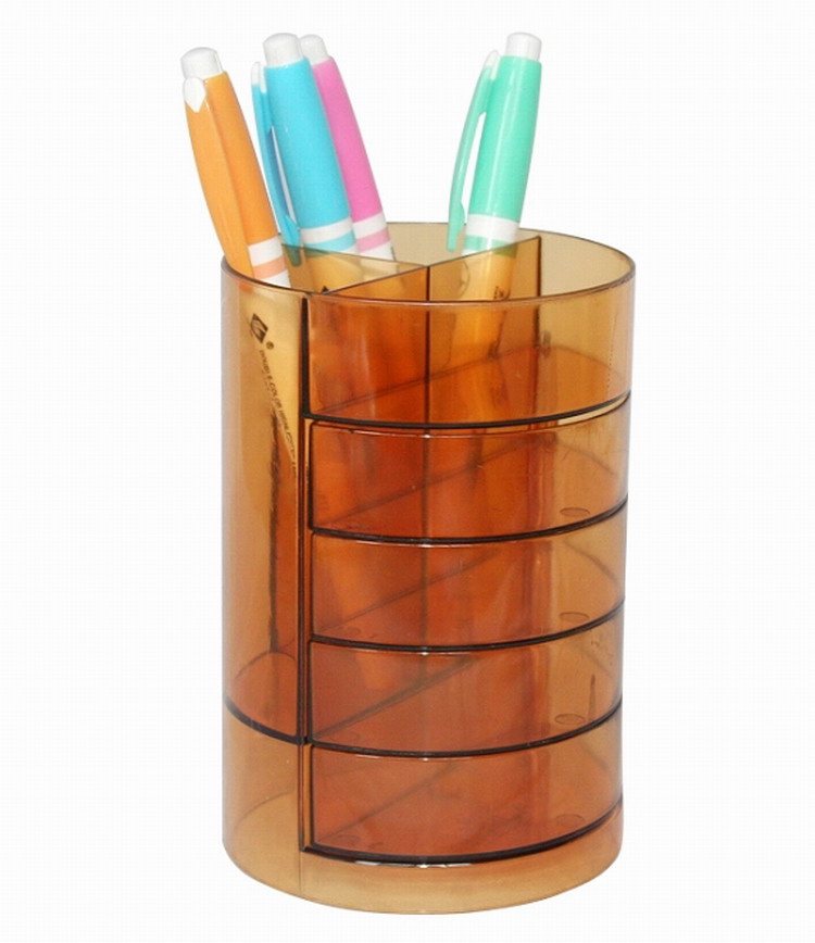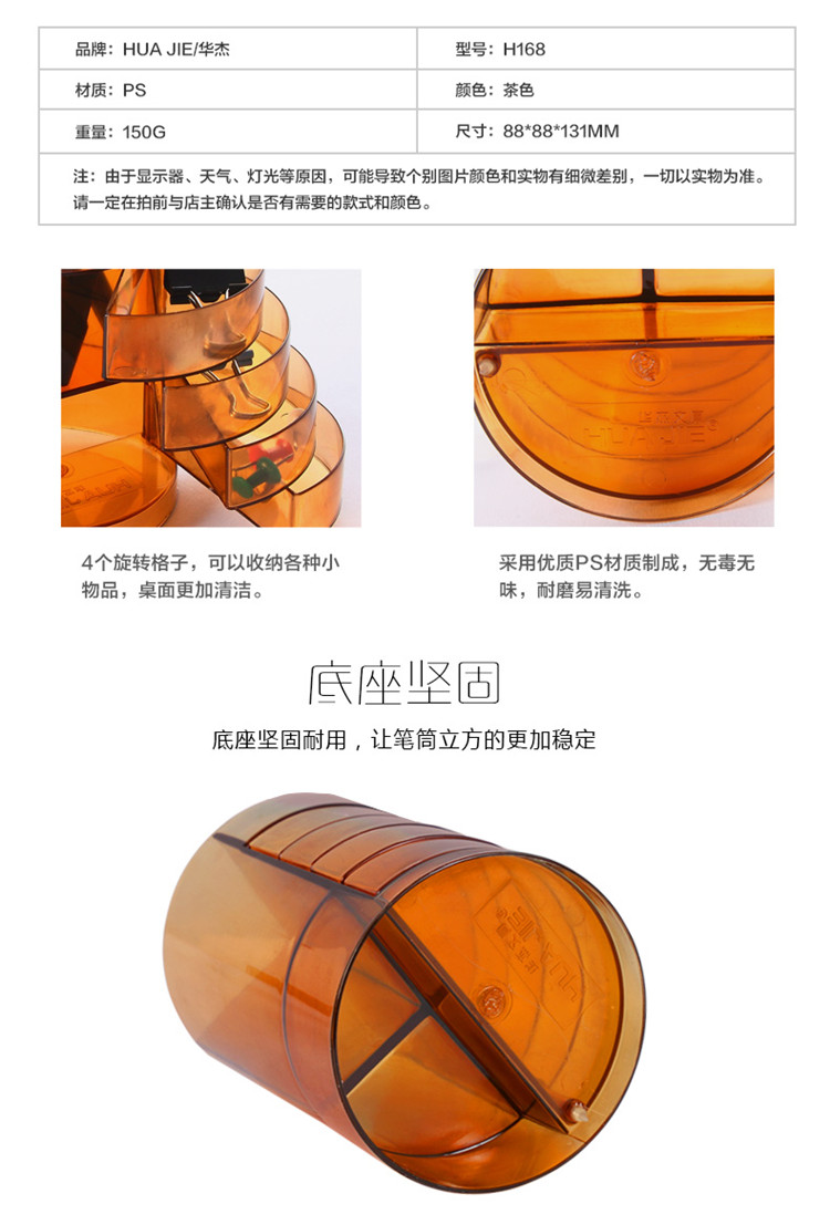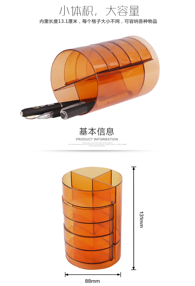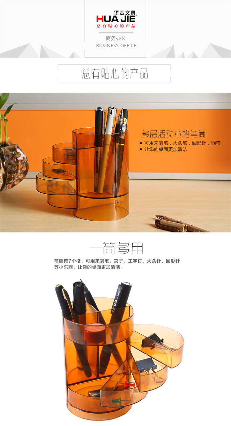 華杰多功能組合茶色透明創(chuàng)意辦公筆筒四層分隔H168 透明色