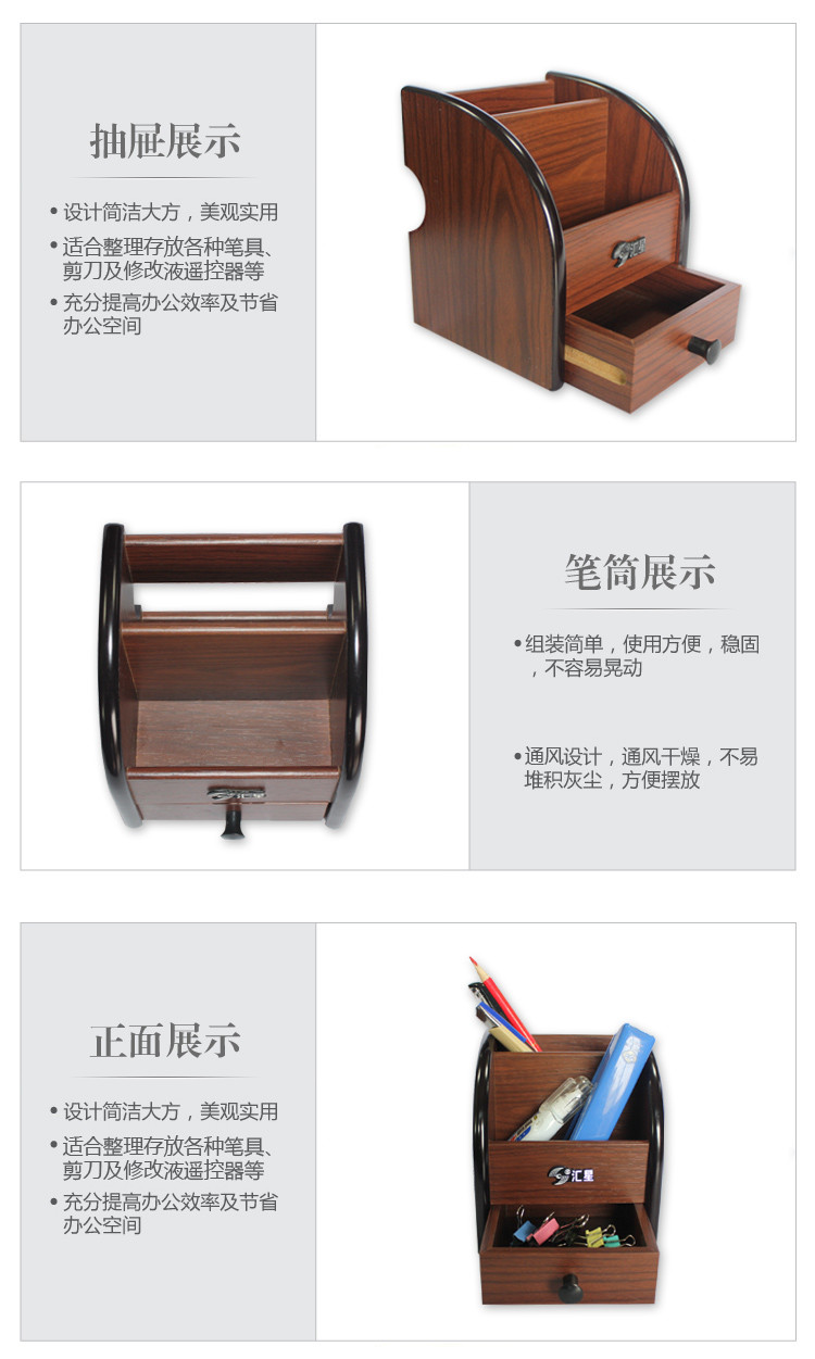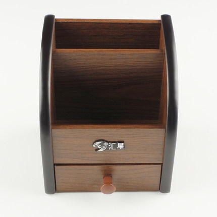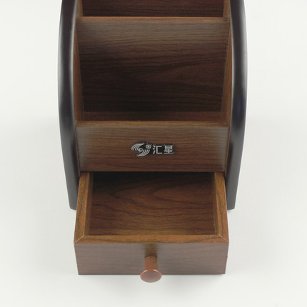 匯星木質(zhì)筆筒HX-1022多功能帶抽屜桌面文具遙控器化妝品收納盒