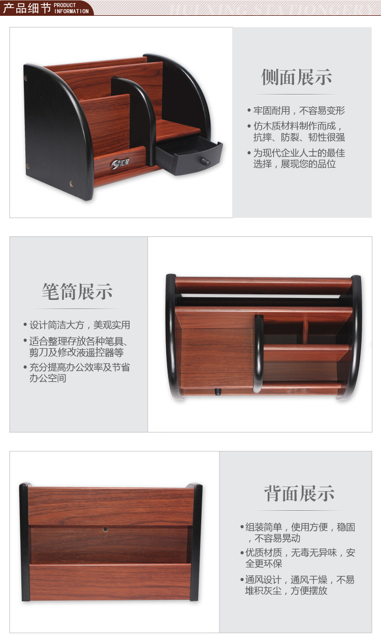 2017多功能型方形辦公桌面收納盒擺件實木個性大號木制1013筆筒
