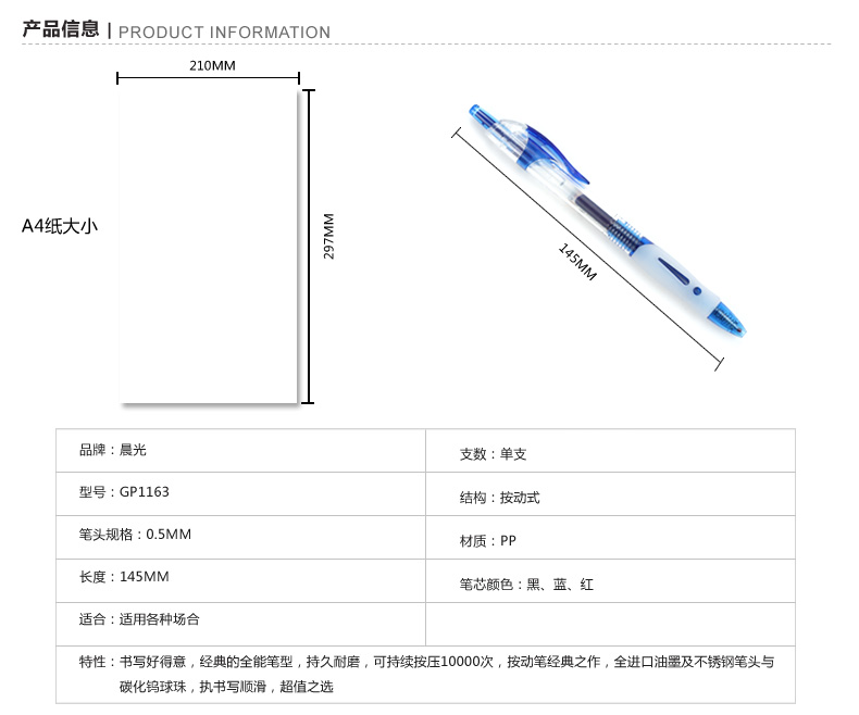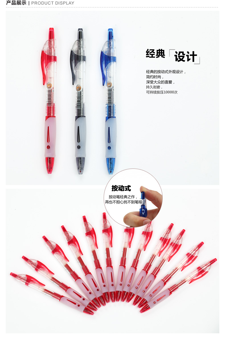 晨光文具 按動(dòng)中性筆 辦公經(jīng)典 GP1163黑藍(lán)紅簽字筆0.5水筆按制筆