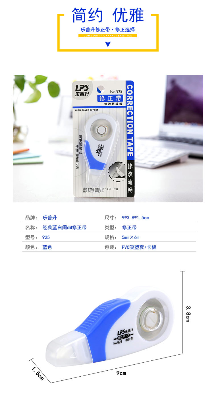 樂普升修正帶925創(chuàng)意簡約學(xué)生涂改帶改正帶改錯帶6M 辦公學(xué)習(xí)文具