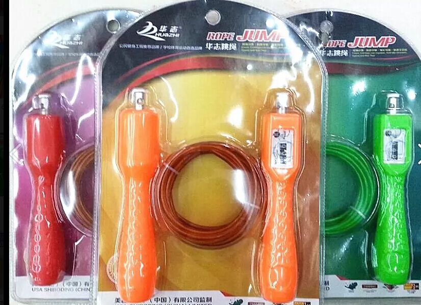 特價(jià)華志5103塑料跳繩鋼絲計(jì)數(shù)器防滑重磅全國(guó)橙色學(xué)生用