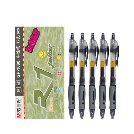 晨光文具按動中性筆GP-1008水筆簽字筆0.5藍黑處方開單筆