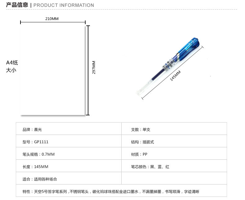 晨光文具 GP-1111中性筆 0.7mm 水筆 辦公 簽字筆黑 紅 藍(lán)色