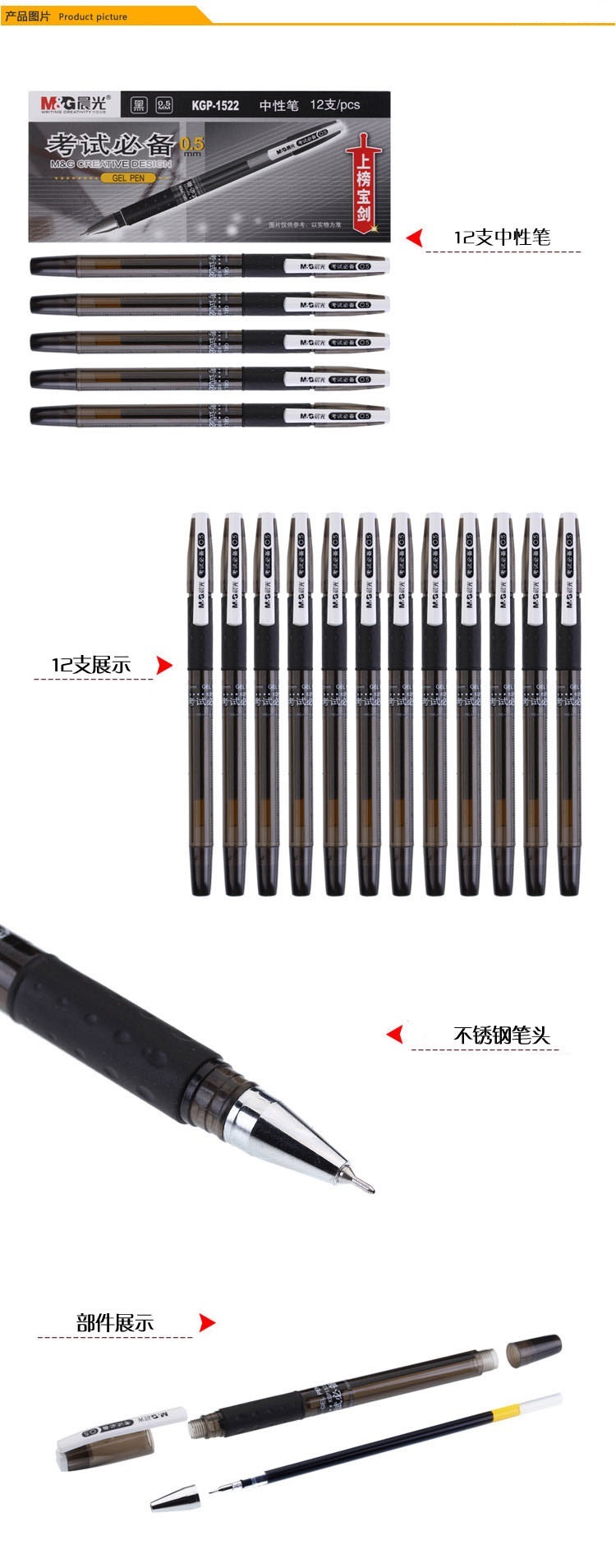 晨光文具中性筆KGP1522水筆簽字筆葫蘆頭0.5 學生考試上榜寶劍