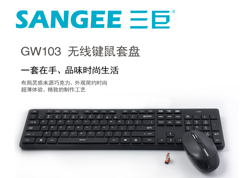 Sangee三巨GW103無線鍵盤鼠標(biāo)套裝 節(jié)能省電 超薄 無線鍵套裝